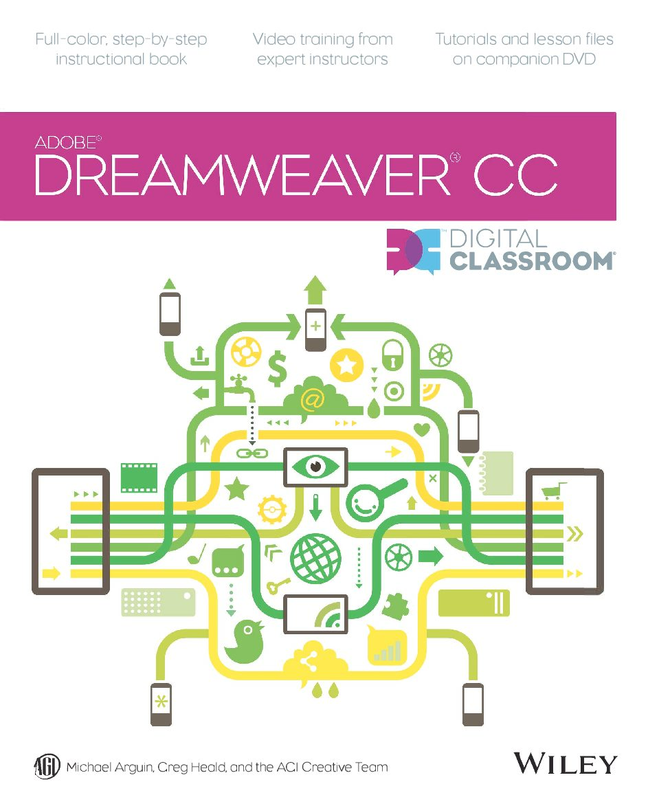 Learn Adobe Dreamweaver CC with this full-color book and DVD training package You may be eager to learn how to use Adobe Dreamweaver CC (Creative Cloud) to create great websites, but you’d like to tackle it at your own speed. If so, this book-and-DVD learning combo is perfect for you. More than 16 lessons, each including step-by-step instructions and lesson files backed by video tutorials, guide you smoothly through website design to implementation to maintenance, helping you build solid skills at your own pace. It’s like having your own personal Dreamweaver instructor at your side. Combines a full-color, step-by-step instructional print book along with lesson files and video training on DVD, to teach readers how to use Adobe Dreamweaver CC Provides thorough training from a team of expert instructors from American Graphics Institute (AGI) Covers essential topics such as applying style sheets, using dynamic HTML, adding style with images and multimedia, publishing and maintaining websites, using hyperlinks to navigate, and using databases to create dynamic websites You’ll be building websites, formatting web pages, and creating forms in no time with Adobe Dreamweaver CC Digital Classroom. Note: DVD and other supplementary materials are not included as part of the e-book file.